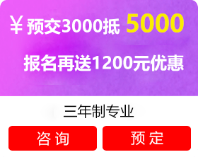 预定2019年春季名额,预交1000元,除预定班级名额外,两年制及以上专业额外享受1200元优惠。